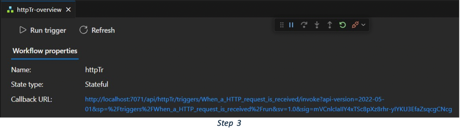 Step 1) Run the Workflow by hitting F5 or selecting the Start Debugging option