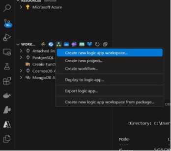 To start, we need to create a Logic App workspace by selecting the “Create new logic app workspace” option that is made available when we select the Azure tab on the left menu, as shown in the below image: