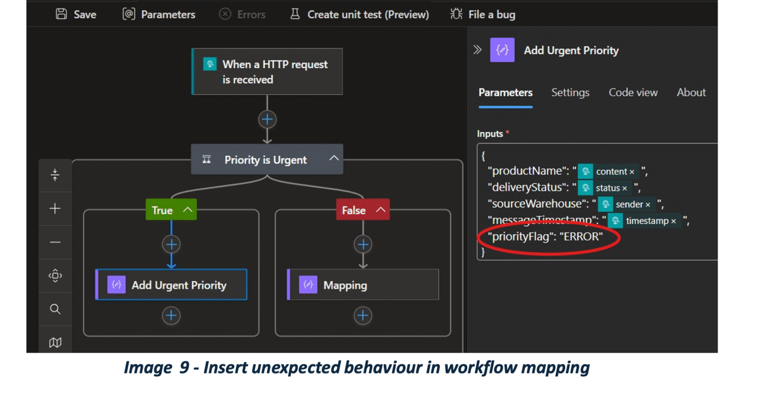 Now let’s try to provoke a unit test error to see how it looks like. We will not change the Unit Test code, but instead implement an unexpected behaviour in the workflow and see what happens to its respective unit test.