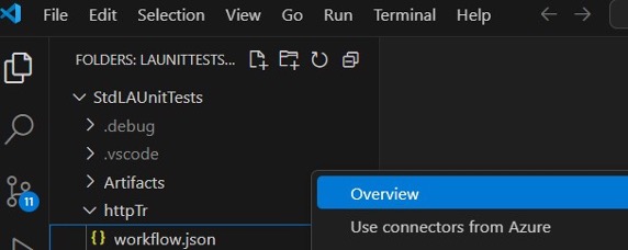 Step 2) Hover the workflow.json file, right click on it and select the option Overview