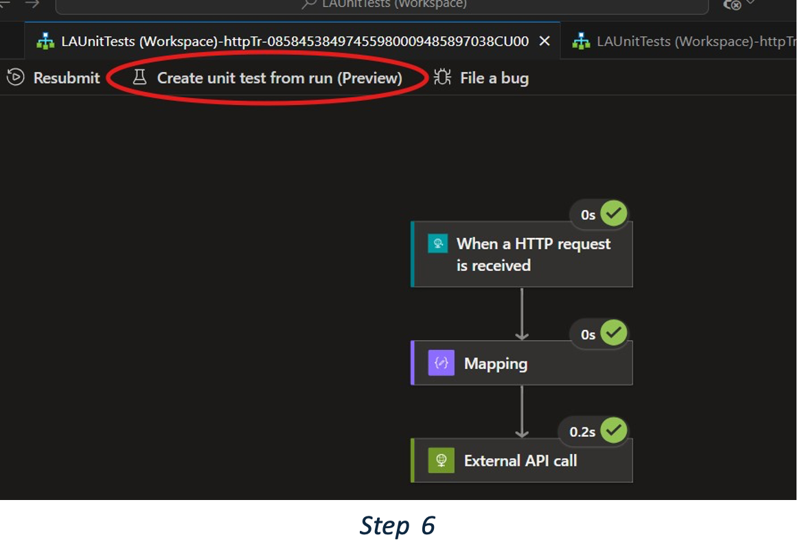 The Azure Logic App (Standard) extension now includes a preview functionality to create Unit Tests from workflow runs, which makes this process easier to implement, and that we’ll be showing in the following steps: